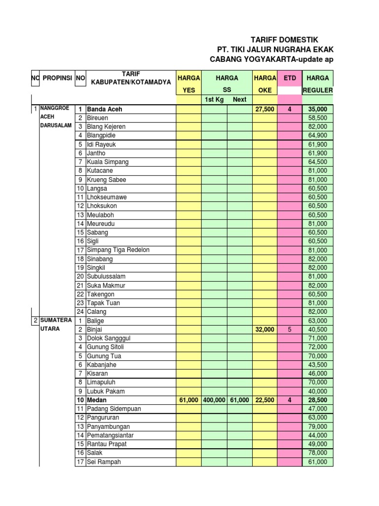 Tarif Ongkos Kirim Jne Regular Dari Kota Surabaya Ke Aceh